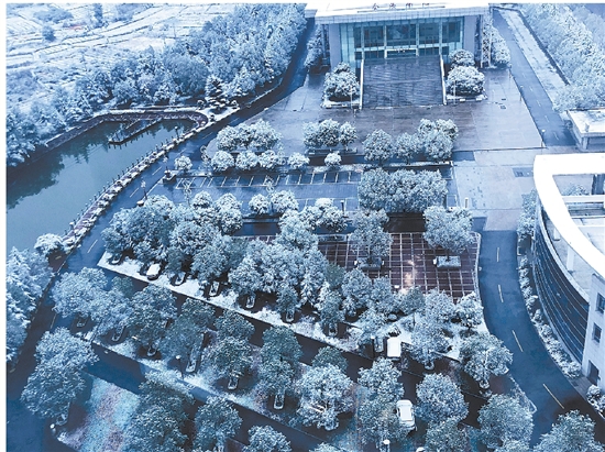 大雪过后,把偌大的停车场打扮得分外美丽。