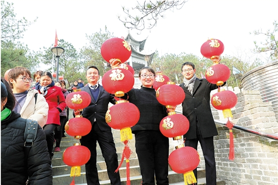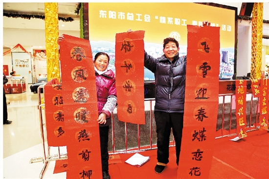 春节前夕,花园村到处洋溢着节日的喜庆氛围。这边,村民和游客们纷纷来到福山上,把一盏盏大红灯笼高高挂起,祈福新的一年风调雨顺、国泰民安、百姓幸福;那边,在“情系职工 春联送福”活动中,东阳市书法家协会会员们为花园村村民、花园集团员工以及即将回乡过年的外来务工者写春联送祝福,呈现出一派热闹而又祥和的景象。