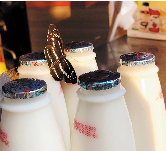 《早餐店的偶遇》 买早饭时,偶遇一只蝴蝶,近距离感受到了蝴蝶的对称美。 拍客:洪北燕