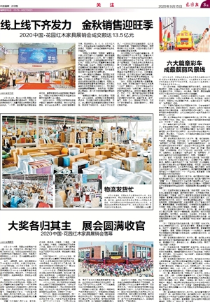 (女)看,最后走来的是“花园红木”彩车方阵。彩车上如意、工匠、大鼓、太师椅代表着蜚声内外、汇通天下花园红木诞生、发展、壮大的光辉历程!寓意着花园红木家具城通过短短十年的磨砺、淬火、锻造,一经推出,就一鸣惊人!以其高起点、高品位、高发展的姿态稳坐全球红木专业市场头把交椅!成就了“天下红木第一村”的美誉!也寓意着花园红木家具城开业十周年庆典暨2020中国·花园红木家具展销会吉祥如意!圆满成功!