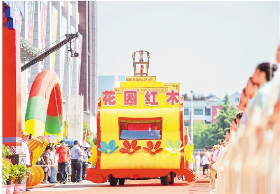 (男)本次展销会共有六大篇章彩车和六组人形方阵,他们分别展示了科技、绿色、活力、和谐的中国花园形象和花园红木“天下第一”的傲人风采。