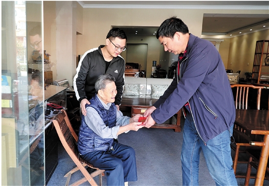 花园村西田小区96岁的厉世盛领到5000元高龄补贴。