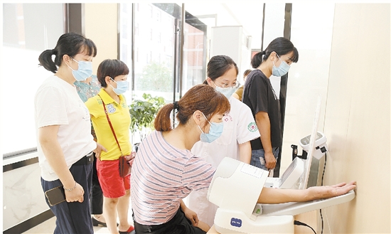 9月27日,村民在位于花园小区浙大路2至6号的花园村社区卫生服务站内测血压、健康咨询、就诊等。为完善社区卫生服务功能布局,让居民享受到更多健康红利,花园村与花园田氏医院合作在村里设立花园村社区卫生服务站,配备了全科门诊、处置室、诊疗室、药房、观察室等功能区块,实现优质健康服务进社区零距离。