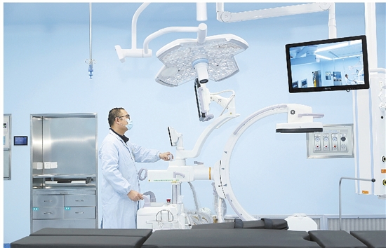 近日,花园田氏医院新装修的手术中心内,设备科负责人正在调试数字化手术间内各种设备,为接下来正式启用做好准备。据介绍,花园田氏医院2021年在投资新装修的手术中心增设了数字化手术间,届时手术患者的信息以最佳方式进行系统集成,使专家、医生、护士都能获取更全面的手术信息以及更多的影像同步和更精确的手术导航,为手术患者提供更安全、更高效、更便捷的服务,同时也为手术观摩、同步教学、跨科会诊等提供可靠的通道。 (本报记者王江红 通讯员王丽双摄)