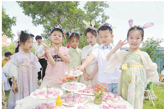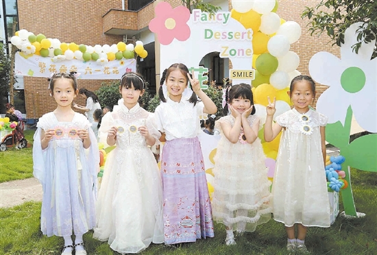 在第74个国际“六一”儿童节来临之际,5月29日,花园外国语幼儿园举行“繁花朵朵 六一花花”为主题的儿童欢乐派对,通过奔赴一场花漾之约,制作喷绘画、彩泥花朵、鲜花饼、花朵伞等带有“花元素”作品;观看一场“花儿”美妙电影,度过幸福美好时光;乘坐一趟“花园号”小火车,乐逛校园美丽景色等活动,为孩子们打造一个温馨、有趣、充满爱的节日氛围,让他们在活动中学习、在欢笑中成长。