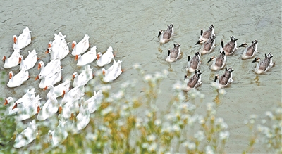 《白鹅与灰鹅》 物以类聚,鹅以群分。 拍客:王会舜