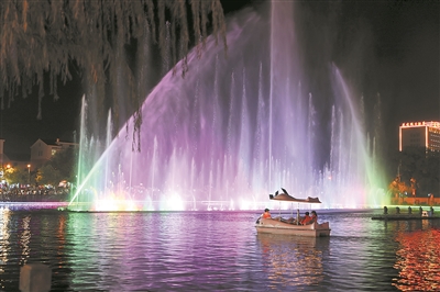添彩乡村夜经济 夜幕降临,花园村吉祥湖畔人流不断,乡村绚丽夜景吸引游客们驻足欣赏音乐喷泉、观看水幕电影、领略湖光美景、进行亲子游乐、畅享娱乐文化。吉祥湖是东阳热门网红湖,花园村围绕夜购、夜食、夜游、夜娱等主题激活夜经济,随着夜经济持续升温,湖周边游乐场、美食街、夜市等各式商家摊位鳞次栉比,还有露天舞池、群众大舞台、职工活动中心等文化娱�