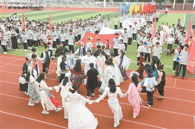 9月29日,花园外国语学校举行庆国庆活动,一场主题为“科技铸就强国梦 青春赋能新时代”的2025年金秋庆典暨第九届德育节、体育节开幕式激情演绎,学前部、小学部、初中部、高中部的师生们齐上阵,以运动为名,悟科技力量,担青春使命,唱响“科技赋能 强国有我”主旋律,积极营造爱国爱校、健康向上的良好校园氛围。 就在同一天,花园高级中学举行第十七届田径运动会开幕式,伴随着激昂的旋律,各班方阵依次入场,学生们精神抖擞,带来了创意十足、精彩纷呈的节目表演,多样的形式充分展现学子们的蓬勃朝气与无限创意,运动会不仅为学生们提供了展示风采的舞台,更弘扬了团结拼搏的体育精神。(王江红 周振平 李祉乐摄) |