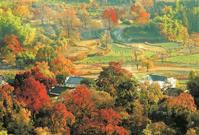 《秋色美》 乌桕叶飘红,古宅映其中。 拍客:王会舜