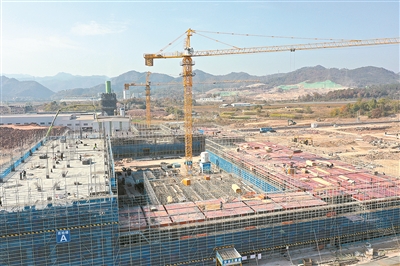 12月4日,浙江省重大产业项目——花园科新制药公司年产8亿支高端吸入制剂研发及智能制造基地建设项目工地上,吊塔林立,机声隆隆,工人们在建筑上开展立模版、绑扎钢筋、浇筑混凝土等作业,一片繁忙景象。据介绍,该项目是东阳市医药产业首个重大智能制造项目,建成投产后,将有效填补东阳市在高端呼吸类药物领域的空白,助力高端吸入制剂国产化并实现进口替代。8月初开工以来,花园科新制药公司以“开局即冲刺”的姿态,全力有序推进项目建设,力求早建成、早投用、早见效,为东阳市经济发展注入新活力。(王江红摄)