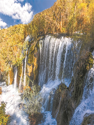 《冬日瀑布》 挂瀑飞花鸣翠谷,飞珠溅玉映晴空。 拍客:王泽民
