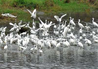 《塘间鹭影》 群鹭逐波起,白羽满塘飞。 拍客:王会舜