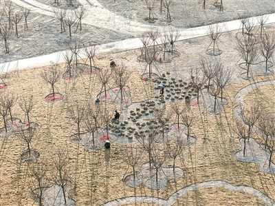 1月15日,花园村天香湾樱花种植区内,挖掘机在平整土地,工作人员在铺设草坪。一段时间来,花园园林公司趁冬季移栽时机,根据景区设计,对该区域进行重新改造提升,致力明年春天樱花季,能让游客在樱花树下有更好的观赏体验。