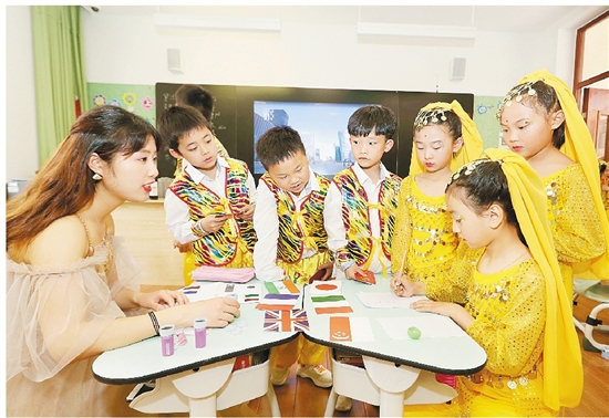4月19日,花园外国语学校小学部分别举行世界旅游日主题活动以及第二届春季趣味运动会。主题活动中,学生们手持“护照”穿梭在各个“国家”,用英语闯关的方式实现“游中学、学中乐、乐中玩”,并认识了世界各国的文化特色和乡土风情。而运动会开幕式上,学生们穿着各个国家的特色服饰精彩亮相,体验了一把“奥运风”,还参加了吹乒乓球、摸石过河、企鹅漫步、抛接绣球、亲子跳绳、袋鼠接力等亲子比赛项目。
