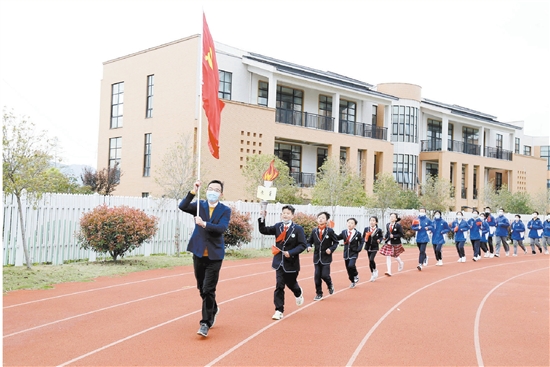 图为“读书”火炬传递环节。 花园外国语学校举办读书节建书香校园 让“书香”花外传递不熄的“读书”火炬 本报记者周振平 马莉 孔子说,敏而好学,不耻下问;杜甫说,读书破万卷,下笔如有神;周恩来说,为中华之崛起而读书;冰心说,读书好,多读书,读好书;高尔基说,书是人类进步的阶梯;培根说,知识就是力量……古今中外,与读书有关的至理名言举不胜举。 今年4月23日,将迎来第27个世界读书日。在这春暖花开、阳光明媚、万物复苏的季节,4月1日,花园外国语学校举行了以“新时代好少年·强国有我”为主题的第四届读书节启动仪式,吹响了为期三周的读书节系列活动冲锋号角。 校长宣讲亚运 开启读书征程 “亚洲运动会简称‘亚运会’,是亚洲规模最大的综合性运动会,由亚洲奥林匹克理事会的成员国轮流主办,每四年举办一届,是一项盛大的体育赛事;亚运会办赛理念为:绿色、智能、节俭、文明;赛事项目包括田径、羽球、棋类、保龄球、拳击、轻艇、板球、台球等。”启动仪式上,花园外国语学校党委书记、校长韦红斌带领幼儿园、小学、初中、高中等各学部校长依次上台为学生们开讲亚运知识小课堂,以亚运文化知识点亮学生读书的心。 台下学生听得聚精会神。“我知道第十九届亚运会将于今年9月10日至25日在杭州举办,我们金华也将承担赛事,因为亚运会就在我们身边,借着这次读书节举办的机会,我们可以更多地了解亚运知识,运用体育精神指引我们读好书。”花园外国语学校高一学生陈璟锋兴奋地说。“心心相融,爱达未来”,这是今年杭州亚运会的主题口号,传递的是自信乐观、不畏挑战、共迎美好的期许,与“永远向前”以及“更快、更高、更强”的运动精神,寄托着面向未来,共建人类命运共同体的良好愿望。 “通过了解亚运相关知识,开展读书系列活动,帮助学生树立正确世界观、人生观、价值观,引导他们成为有理想、有担当、忠于祖国、忠于人民、践行社会主义核心价值观的新时代好少年。”韦红斌激励广大学生好好读书、认真学习、提高素养并对他们寄予了殷切的期望。 传递“读书”火炬 发起读书倡议 启动仪式上,传递读书火炬将活动推向了高潮。韦红斌将写有“书香”二字融合火炬形象和书本意象并代表读书精神的“读书火炬”传递给学生,并高举党旗引领各年级代表共同围绕田径场奔跑,手手相印,心心相依,以火炬传递的形式,传播亚运梦想,传递读书内涵,传达运动与读书相结合的精神力量,让学生们树立远大理想、热爱伟大祖国、担当时代责任、勇于砥砺奋斗、练就过硬本领、锤炼品德修为。 “请记住我们要终身结交的两大好朋友:读书和运动。读书宜静,安静地翻书,安静地摘录,安静地思考。运动当然宜动,强健体魄,磨炼意志。一静一动,细思起来,其本质是相通的,都要有梦想,都需要坚持,都能更好滋养我们的生命。”花园外国语学校常务副校长、高中部校长吴国建代表学校发起读书倡议,号召学生们一起在少年时代好好读书,在祖国需要的时候,大声回答:“请祖国放心,强国有我!”的确,读书和运动,互相衬托,互相补充,互相添彩,互相受益。读书以开拓心智,运动来唤醒身体,读书越多,内心就越充实丰富;运动越久,脚步就更加坚定踏实。坚持读书,坚持运动,提升灵魂,增强体魄。 花园外国语学校初中部学生马阳光雪儿作为学生代表发言时说:“黑发不知勤学早,白首方悔读书迟。同学们,让我们像敬爱的周总理那样,为中华之崛起而读书,努力成为精神的巨人,知识的富翁,国家的栋梁。”其间,各年级学生代表共同在印有“新时代好少年·强国有我”海报上签字,展示莘莘学子风采,践行无悔青春誓言,怀揣强国梦想,坚定“努力学习 好好读书”理想信念,以乐观向上的心态执笔为剑,不负昭华! 开展系列活动 激发读书热情 “今天的启动仪式只是开始,敬请期待接下来的系列活动!”花园外国语学校副校长、小学部校长赵晓丽介绍道,读书节活动为期23天,从4月1日开始,一直到4月23日,时间跨度长,涉及范围广,活动内容多,将在整个校园营造出良好的读书氛围,让每一位学生都充分参与进来,都能有所收获。 花园外国语学校根据各学段需要与特点举行不同的活动:利用黑板报、手抄报、班队课等,加强读书节活动宣传;各班级依据读书活动要求,结合实际,为班级学生推荐一批好书;教师发挥指导作用,教给学生读书方法,在读书中增长知识、明理懂事、陶冶情操、获取真知、树立理想。此外,花园外国语学校为深入开展读书活动,还组织开展形式多样的竞赛活动,如读书征文比赛、演讲比赛、知识竞赛、诗歌朗诵、歌咏比赛等,从而激发学生的读书热情,培养学生课外阅读的能力,推进书香班级、书香校园建设,营造浓厚的读书氛围,丰富校园文化生活。 “经过这次启动仪式的气氛渲染,学生们参与读书的热情非常高,不仅增强了学生读书兴趣,提升了写作水平,也是对教师平时教学能力的一次检验。”花园外国语学校小学部音乐教师罗才渊说道,读书的生活是幸福的,教师更要把读书当成生活的一部分学以致用,时时用全新的教学理念和方法来支撑自己的教育教学工作。 |