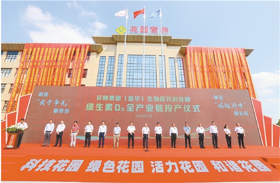 本报讯(记者吴浩宇)秋风送爽,丹桂飘香。9月21日上午,花园集团(金华)生物医药科技园维生素D3全产业链投产仪式,在金华经济技术开发区的金华健康生物产业园举行,标志着世界维生素D3龙头——花园生物公司已建成维生素D3、25-羟基维生素D3、羊毛脂胆固醇、精制羊毛脂等四大类产品的全球最大生产基地。 金华市副市长李斌峰宣布投产。浙江师范大学校长蒋云良,金华市经济技术开发区党工委书记、管委会主任王建中,花园联合党委书记、花园村党委书记兼村委会主任、花园集团董事长兼总裁邵钦祥分别致辞。花园生物公司董事长兼花园营养公司董事长邵徐君介绍项目情况。花园生物公司战略合作伙伴代表——荷兰泰高全球采购中心、中国区采购经理杨桦代表客户向项目投产表示祝贺。仪式由金华市经济技术开发区党工委委员、管委会副主任朱华锋主持。金华市各有关部门单位和金融系统以及金华经济技术开发区其他班子领导和相关单位负责人等参加仪式。 仪式上,浙江师范大学与花园生物公司签约共建创新药物研究院,致力在新时代高质量发展的大背景下实现更高层次、更宽领域、更富成效的合作共赢。蒋云良指出,校企双方本着自愿、平等、互利、共赢的原则共建创新药物研究院,标志着双方的友好合作取得了新的进展、迈上了新的台阶。在今后的工作中,浙江师范大学将在前期友好合作的基础上,进一步加强沟通协商,建立定期交流机制,充分发挥自身科研人才优势,进一步推进花园生物公司维生素全产业链中新产品、新技术的研发工作,同时开展企业智能化、数字化新技术联合攻关,推进高层次人才双向流动,构建以人才培养为纽带、以项目合作为载体的产学研合作新模式,为金华市经济社会可持续发展作出积极贡献。 王建中代表金华经济技术开发区党工委、管委会向花园集团(金华)生物医药科技园维生素D3全产业链投产表示热烈祝贺!他指出,制造业是强市之基、兴市之本。历经51个月努力建设的维生素D3全产业链项目正式投产,维生素D3等四大类产品的全球最大生产基地也正式亮相,这是花园集团深耕开发区的历史性跨越,也是开发区实业兴城的关键性落笔,势必为加快“崛起浙中”注入强劲新动能。他希望,金华市经济技术开发区各有关单位部门要当好“店小二”,主动服务、靠前服务,急事急办、特事特办,为企业提供360度全方位保障;健康生物产业园要搭好“大平台”,精心谋划,提升园区配套和运营水平,争做产业迭代、亩均效益提升的标杆;花园集团要当好区域的“宣传员”,不仅要在项目深化上抢进度、促满产,更要充分发挥龙头作用,在招大引强、就业致富、引才创新等多个领域为区域宣传、助威、搭桥,为金华市探路“两个先行”贡献花园力量。 邵钦祥在致辞中表示,经过40多年的创业创新,花园集团已经形成以高科技产业为主导,新兴产业和传统产业相配套并带动花园村经济的发展格局,主要有生物与医药、新能源与新材料、红木家具与木制品、新建材与建筑、文化旅游与教育卫生等五大产业。他指出,今年以来,花园集团继续以“改革创新 提质增效”为抓手,以大产出大效益为目标,不断做大做强做精五大核心产业,形成了新一轮高质量发展新格局。前不久,花园集团还与巴斯夫签订战略合作协议,双方在维生素产品以及金属表面处理技术、金属注射成型、医药辅料、绿色包装材料、水性涂料开发等多领域展开全面合作,致力实现互利共赢并共同发展。他坚信,花园集团(金华)生物医药科技园维生素D3全产业链全面投产,一定会为花园集团生物医药产业打开全新发展空间,为金华经济高质量发展添砖加瓦,为增强浙中城市群建设贡献一份花园力量。 邵徐君表示,随着维生素D3全产业链全面投产,花园生物公司将充分发挥产品技术、研发能力、市场和人才等优势,做全做大做强产业链,让规模效应逐步转化为规模效益,进一步提升全球VD3产业链龙头的国际主导地位。与此同时,花园生物公司还将以技术创新、市场创新、文化创新为引领,持续推进“一纵一横”发展战略,以发展综合性大健康营养公司为目标,向医药领域纵向延伸;以维生素D3全产业链为基础,向多种维生素产品横向扩张,推动企业实现持续快速成长,进而为“崛起浙中”贡献力量。 据了解,花园集团(金华)生物医药科技园项目规划总用地1600亩,计划总投资103亿元,分二期实施,其中一期计划用地1071亩,投资50.6亿,实际供地771亩。自2018年6月27日开工以来,经过各方51个月紧张施工建设,如今,整个园区研发中心、生产区、管理区、生活区等科学布局,五十多万方建筑拔地而起,数十栋厂房一字排开,场面景象蔚为壮观。该项目依托“国家技术发明二等奖”和“国家科技进步二等奖”等一大批国际领先的自主知识产权技术,融合当今先进的生产设备与控制手段,建成一个数字化、智能化的现代化工厂。 图为投产仪式现场。 图为花园集团(金华)生物医药科技园局部风貌。 |