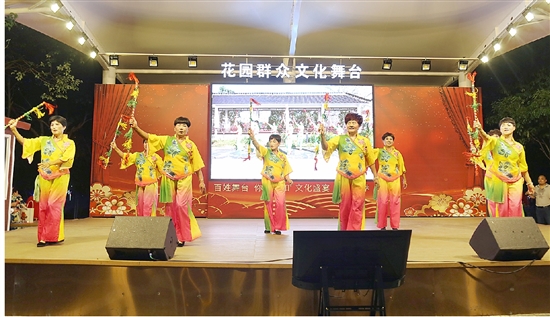 8月1日晚,“八一”建军节,花园群众文化服务中心举行“不忘初心 牢记使命”庆祝中国人民解放军建军97周年活动,村民们用武术、舞蹈、歌唱等不同表演方式,展现百姓稳定幸福美好生活的同时,致敬最可爱的人,感恩他们为保家卫国作出的巨大贡献。 (周振平摄)