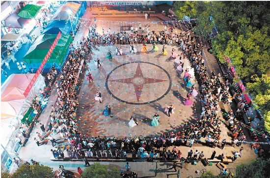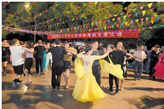 8月31日晚,由花园村群众文化服务中心主办的第四届舞蹈交流大会在吉祥湖畔的花园粮油商贸城舞池激情开跳。伴随着欢快的音乐节拍,来自东阳、义乌、永康等周边县市乡镇的十余支舞蹈队,跳起肚皮舞、拉丁舞、恰恰舞、伦巴舞、华尔兹集体舞等各种舞蹈,以优美的舞姿、饱满的精神、自信的笑容,不断变换着各种队形,展示着优美、连贯的舞蹈动作,“舞”出了新时代群众新风采。 (王江红摄)