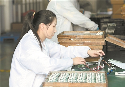 10月29日,花园金波公司生产车间内,工作人员正在忙着生产各类波纹管以及电子智能控制板等产品。随着家电“以旧换新”政策实施,下游家电市场明显升温,花园金波公司订单量实现稳步上升,而今年开拓的电子锁市场更为企业带来新的业务增长极,全公司眼下正鼓足干劲赶订单以冲刺四季度。(王江红摄)