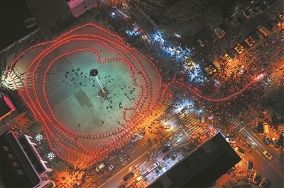 3月21日,瑶仪村一条500多桥的板凳龙巡游花园村,传统非遗与村内现代化夜景融为一体,勾勒出一幅幅独特的美丽画面,吸引四邻八乡老百姓前来观赏。