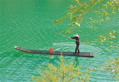 《春江泛舟》 春波绿似染,人在画中行。 拍客:李海波